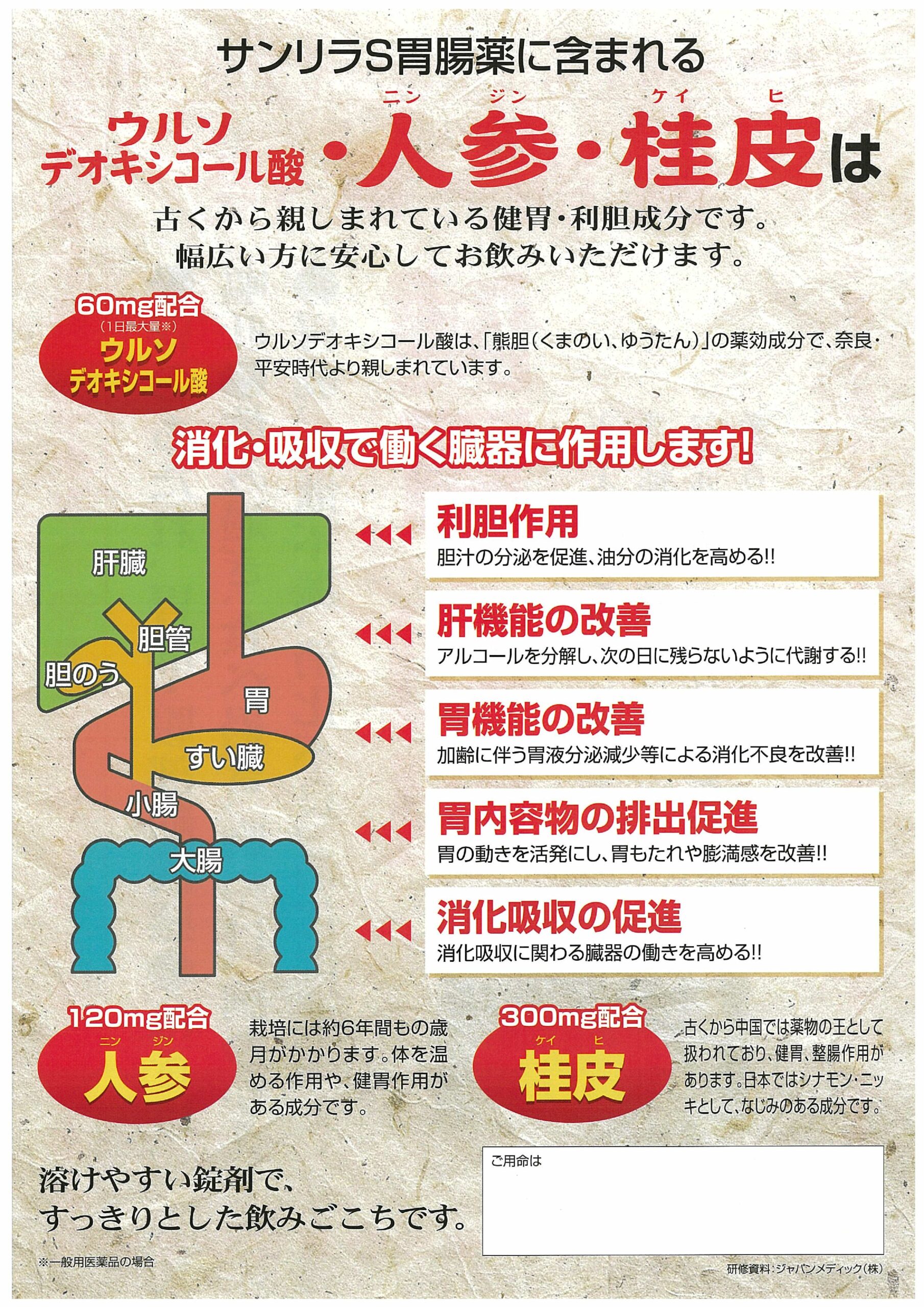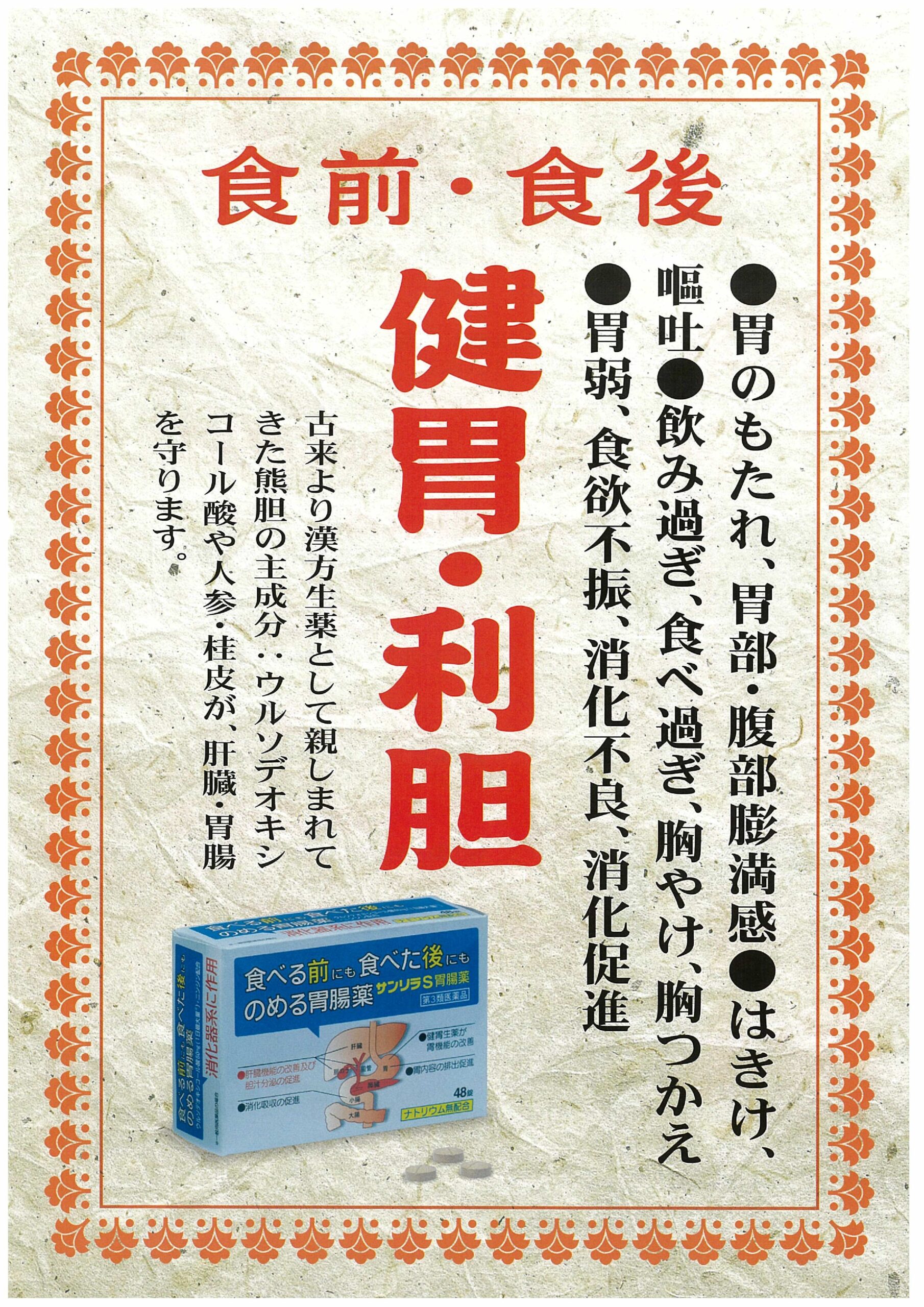 ●食べる前にも後にも,胃の働きをよくしてくれる胃腸薬です。